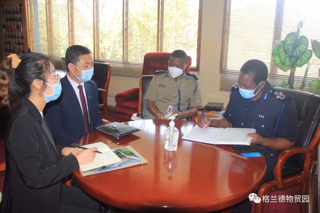 为加强与当地警方联系,进一步保障园区安全,格兰德集团总裁一行拜访马拉维警察总监 9月13日上午,为加强与当地警方联系,进一步保障园区安全,格兰德集团总裁马占江一行拜访马拉维警察总监梅林·约拉姆。 集团总裁马占江首先向约拉姆总监履新表示祝贺,对警察署给予格兰德公司的帮助和支持表示感谢......