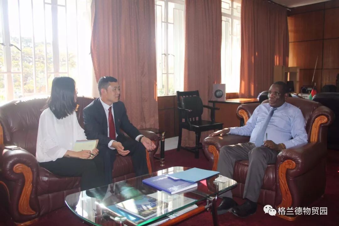 姆瓦纳姆维卡部长对马占江一行的到访表示感谢,对格兰德物贸园区现取得的成绩表示非常认可,同时他还表示,格兰德物贸园项目作为马拉维改革开放以来最大的招商引资项目,是马拉维进一步深化对外开放的有力证明,穆塔里卡总统阁下也十分重视。关于园区特区一事,马拉维各部门一定会对物贸园区给予最大的帮助和支持。
