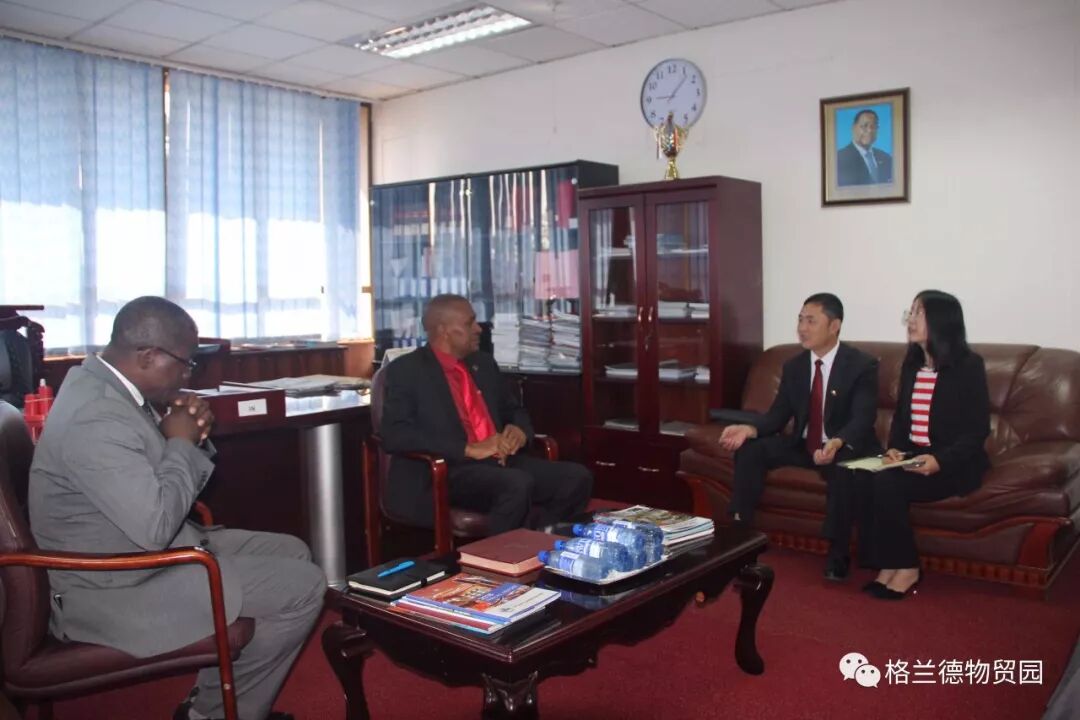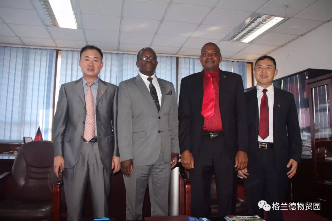 8月22日,格兰德控股集团总裁马占江、总经理武高强等一行拜访马拉维新任工业、贸易与旅游部长萨利姆·巴古斯。工贸部常秘肯·纳达尔在席。