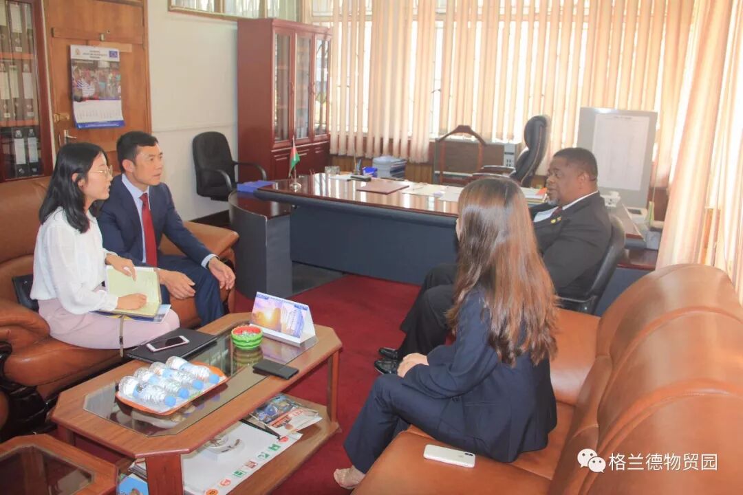 集团总裁马占江首先向玛莎卡部长履新表示祝贺,对部长在任能源部期间给予格兰德物贸园区的帮助和支持表示感谢,尤其是解决了园区供电难的问题,同时就当前园区的项目进展以及未来园区规划向部长做了介绍。随后马占江作为山西省外事办驻马拉维联系代表、山西省贸易促进会驻马拉维代表处首席代表,就加强中马两国在法律服务领域的合作交流与司法部长做了探讨,并向部长引荐了赣江新区国际仲裁院马拉维分院筹备负责人张志杰先生。