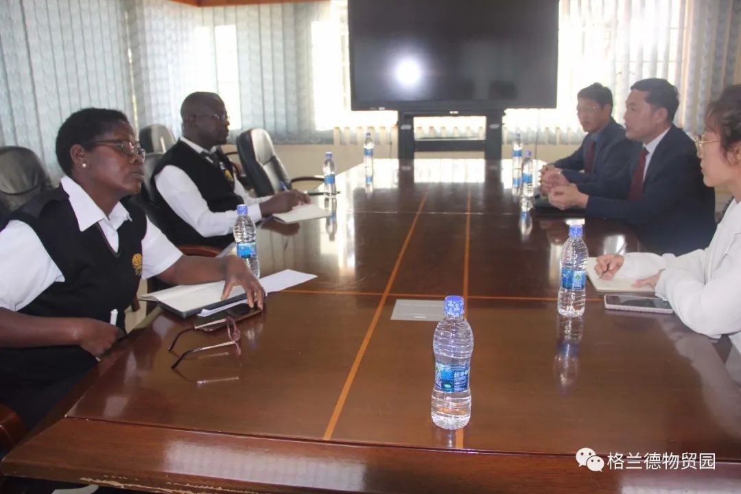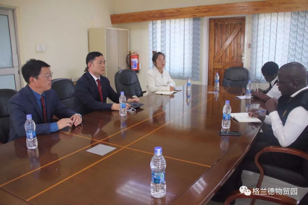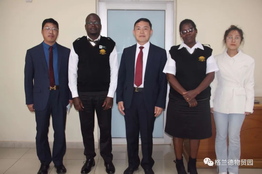 为提升格兰德物贸园区海关清关便利化水平,同时方便园区企业商户通关,为园区商户纾困减负,6月15日,格兰德控股集团总裁马占江、副总裁李兴旺等一行拜访马拉维利隆圭市海关站长昆博· 贡德韦。利隆圭市海关副站长格蕾丝·奇利玛在席。