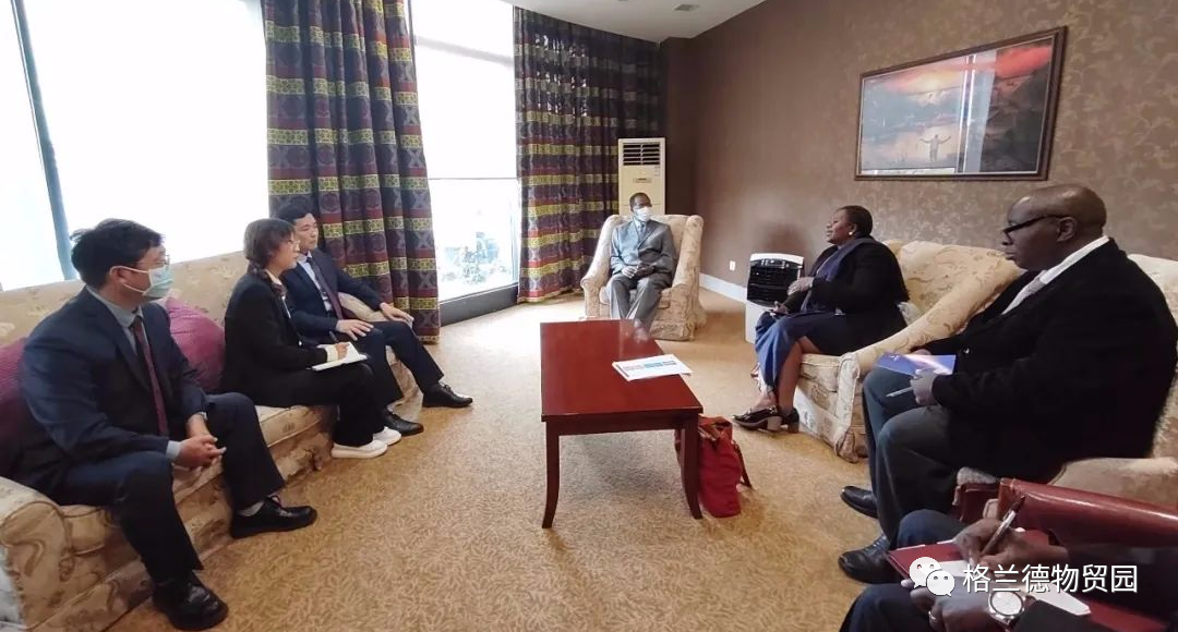 6月22日,格兰德控股集团总裁马占江、副总裁李兴旺等一行拜访马拉维工业与贸易(简称工贸部)部长马克·菲里。工贸部常秘克里斯蒂娜·扎克约在席。
