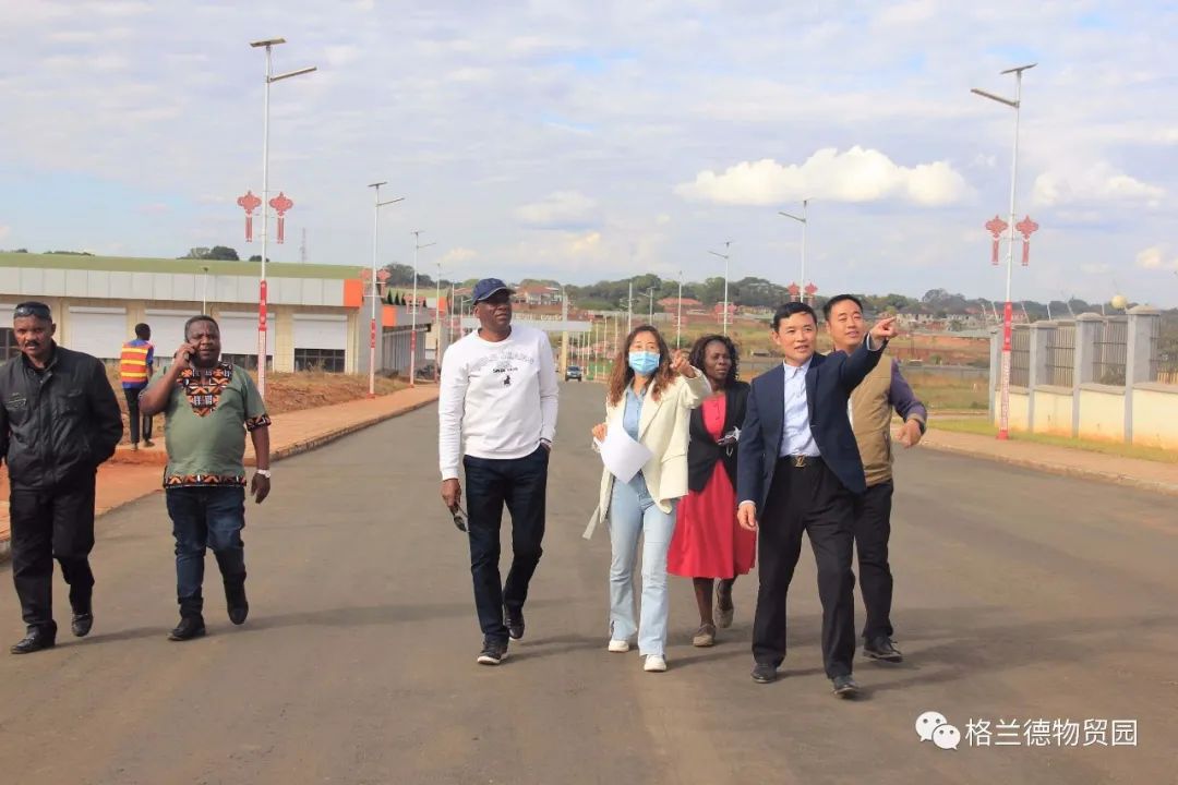 7月8日,为助推园区项目招商,尽快发挥园区功能,马拉维利隆圭市市长理查德·班达等市政府领导一行走进格兰德物贸园区,实地调研园区规划和项目建设工作。格兰德控股集团总裁马占江陪同调研。