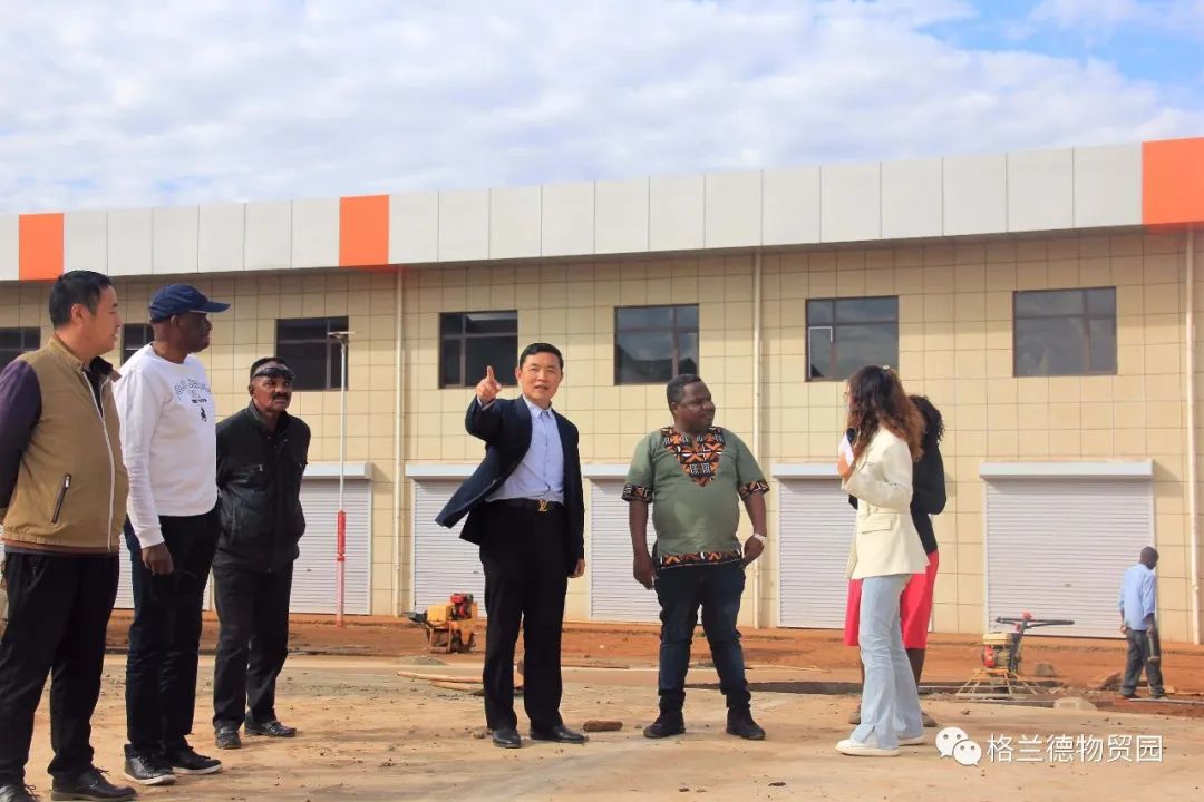 集团总裁马占江首先为理查德市长等一行亲临园区表示欢迎,同时感谢利隆圭市政府长期以来给予格兰德集团的帮助和支持。随后在马占江的陪同下,市长一行先后来到园区街道、商铺区、室内装修等项目现场,实地查看项目施工进度,详细了解园区布局、在建项目和未来规划等情况。马占江表示:园区建设始终坚持“四高”原则——“高起点、高标准、高要求、高质量”,以打造东南非地区第一现代化物贸园区为目标,主动作为再发力,狠抓落实再提速,为马拉维经济社会发展贡献更大的力量。