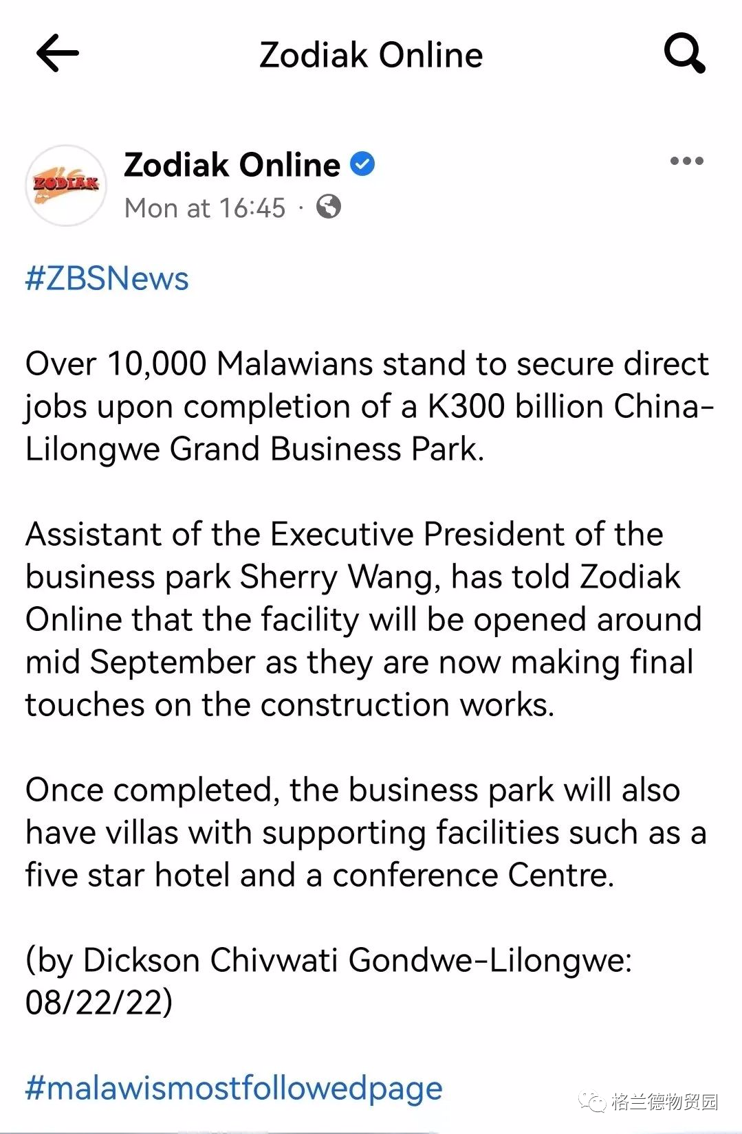 聚焦园区高质量发展,马拉维多家主流媒体点赞... ...
