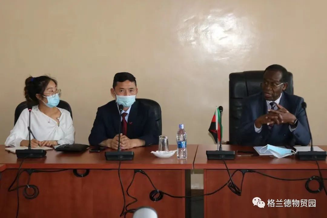 8月25日,为加强统筹协调,完善工作方案,精心做好格兰德物贸园区开园仪式各项筹备工作,马拉维工业与贸易部(简称工贸部)组织召开“格兰德物贸园开园筹备工作推进会”,工贸部部长马克·菲里、常秘克里斯蒂娜·扎克约,工贸部投资副总监乔治·坎提提等领导以及格兰德控股集团总裁马占江参加了此次会议。