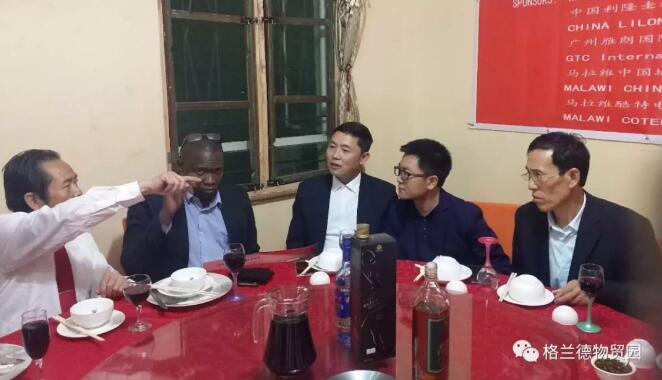 本次活动获得了布兰太尔市政府的大力支持,公司领导同布兰太尔市长威尔德、中资各企业相关领导在中国大饭店共进晚宴,洽谈合作,合影留念。