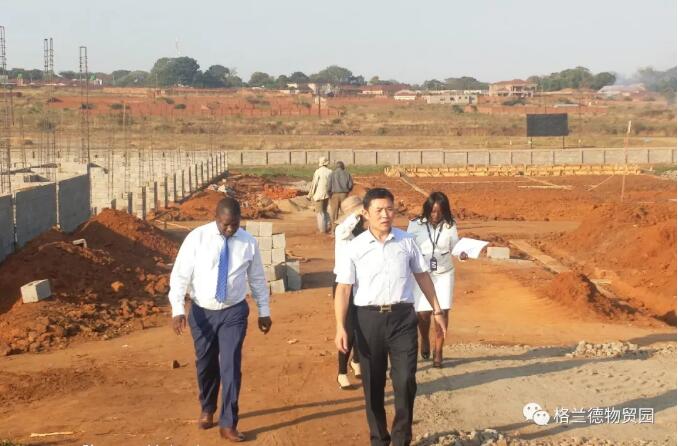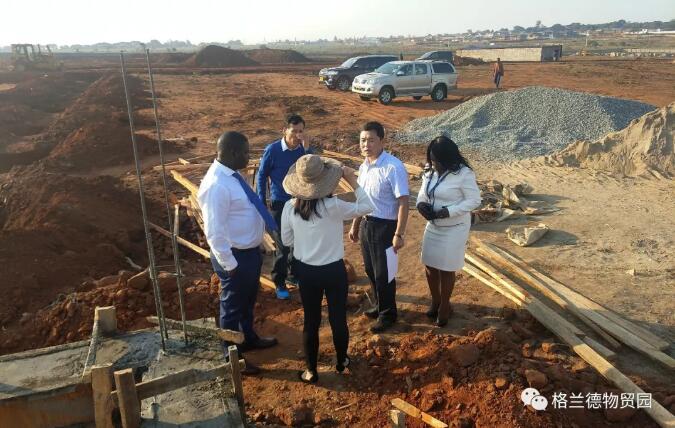 6月26日下午,马拉维国家银行(National Bank of Malawi) 总行总经理Harold Jiya、Gateway分行客服经理Maureen Kwangwanya就有关入驻格兰德物贸园区开设分行、为园区商户提供贷款以及与我公司全方位合作等事宜来我公司进行详谈,随后公司总裁马占江,在公司副总裁高连旺等人的陪同下,带领国家银行代表对项目工地进行了实地考察。