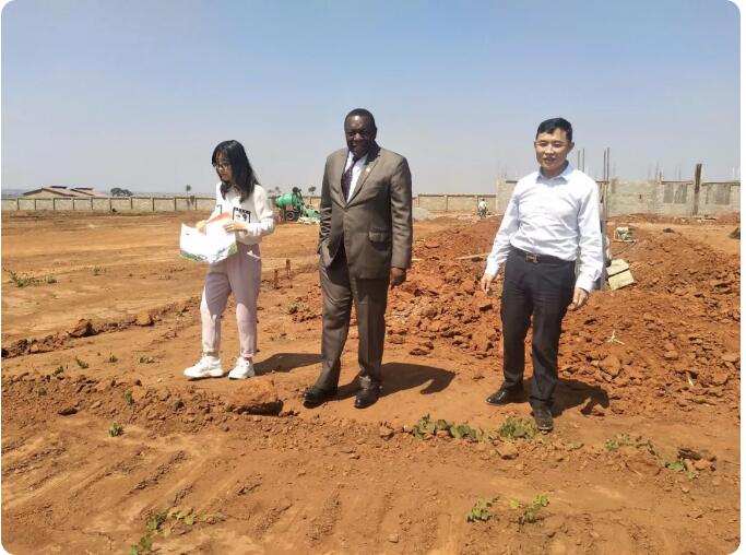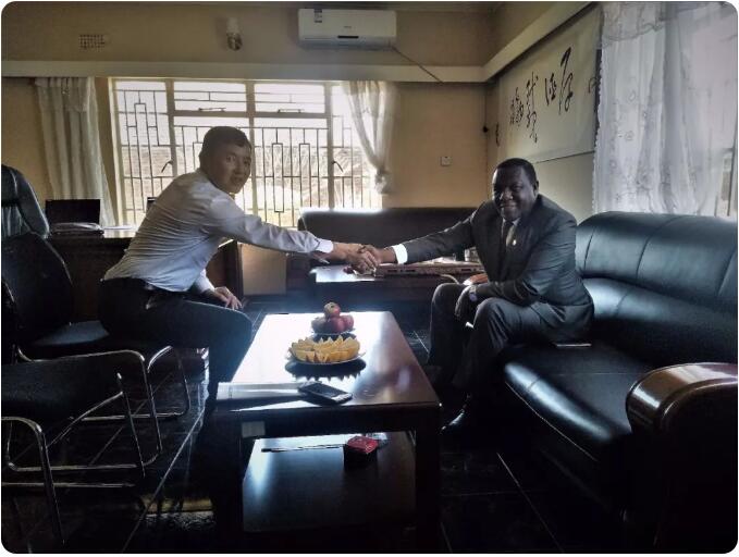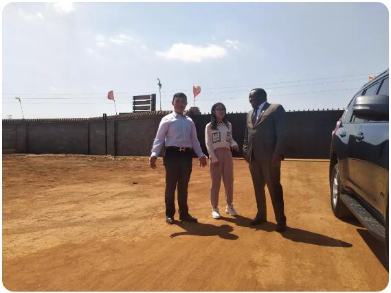 在现场,秘书长Cliff Chiunda详细询问了目前园区的施工情况,并与公司总裁马占江进行了亲切交谈。马总首先为马拉维政府各部门对我项目的支持表示感谢,正是因为政府的大力支持和帮助才使得项目各项工作能够快速有效的推进。同时也提到:格兰德物贸园计划申请成为马拉维经济特区,将我园区作为马拉维的经济窗口,创造更好的投资环境,带动周边经济产业的发展,希望可以得到政府的支持。