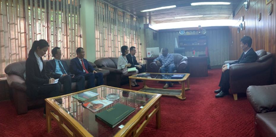 在马拉维访问期间,郑晓峰处长率领代表团分别与马拉维工业、贸易、旅游部长弗朗西斯·卡塞拉、马拉维首都利隆圭市市长德斯蒙德·比克克进行了会谈。会谈中,郑晓峰处长介绍了山西的基本情况,就加强山西省与马拉维各部门交往,在经贸投资等领域合作提出建议,并重点提到:格兰德物贸园项目是中国“一带一路”伟大战略下山西省率先“走出去”的民营企业代表,也是山西省政府高度重视的海外项目,郑晓峰处长代表山西省政府向马拉维政府对山西企业的支持与帮助表示感谢。随后分别向工贸部部长、市长赠送了代表山西特色的纪念品——应县木塔图册。