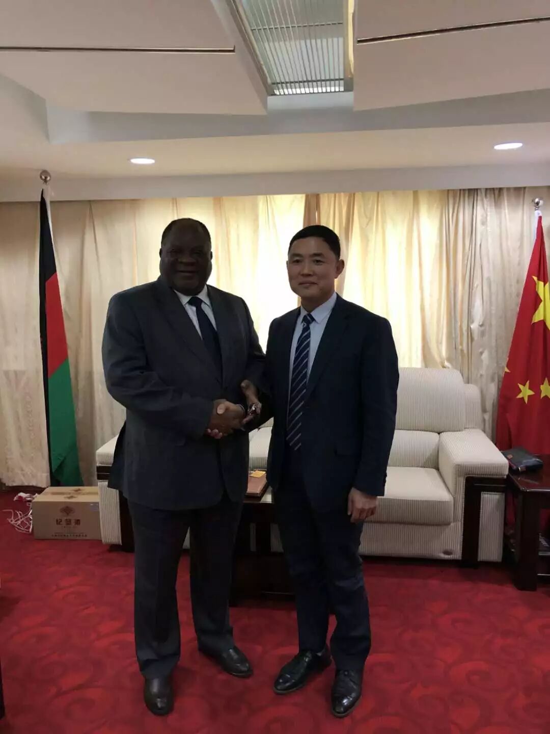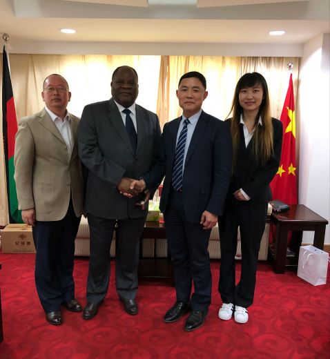 2019年4月11日上午,格兰德集团总裁、山西省贸促会驻马拉维首席代表马占江一行拜访马拉维共和国驻华特命全权大使查尔斯·纳蒙德维。