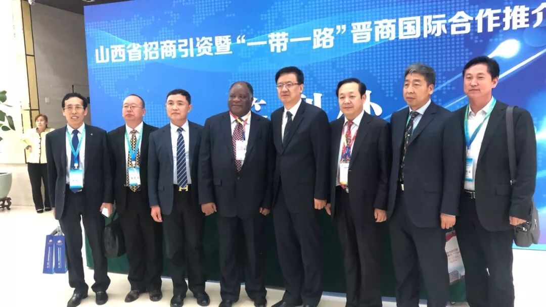 总裁马占江(左三)、马拉维驻华大使查尔斯(左四)、副省长贺天才(右四)、山西贸促会会长陈河才(右三)